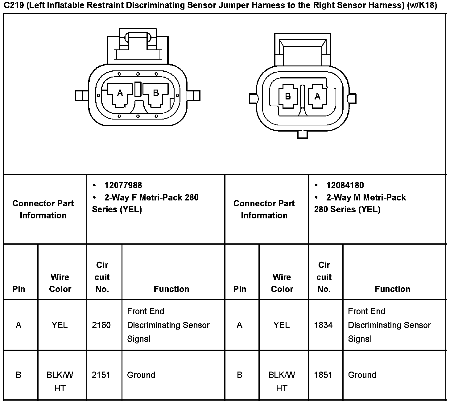 C219 (Left Inflatable Restraint Discriminating Sensor Jumper Harness to the Right Sensor Harness) (With RPO Code K18):