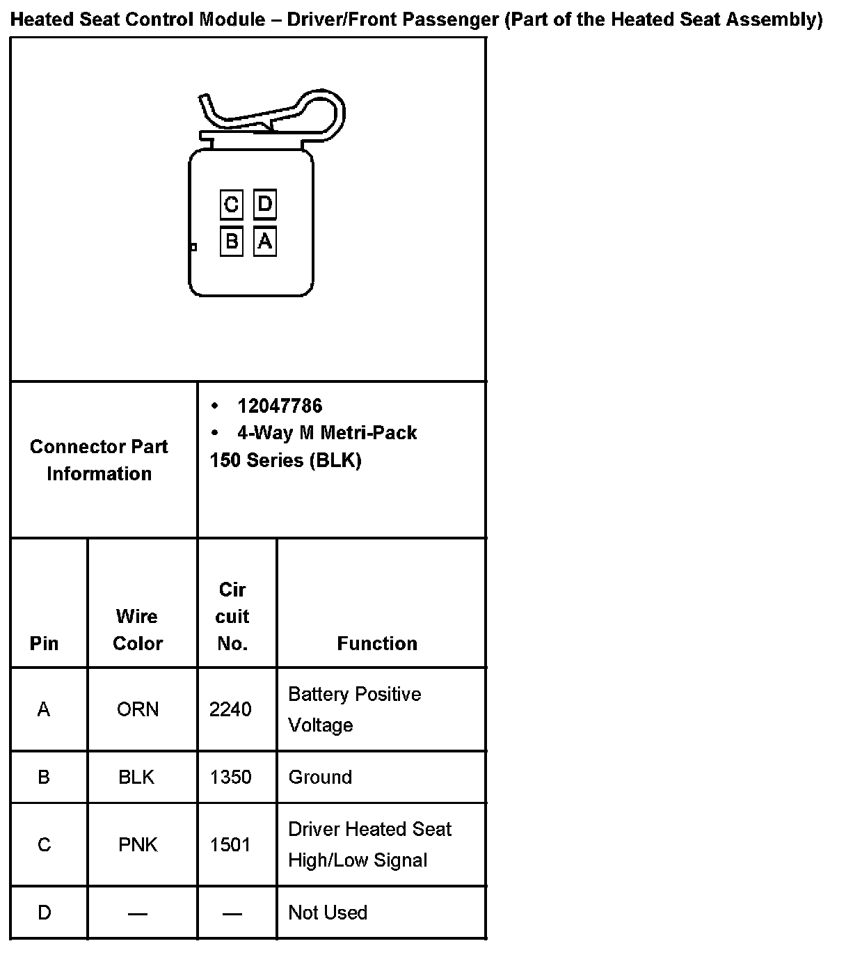 Heated Seat Control Module Driver/Front Passenger (Part of the Heated Seat Control Module) - Driver/Front Passenger (Part of the Heated Seat Assembly):