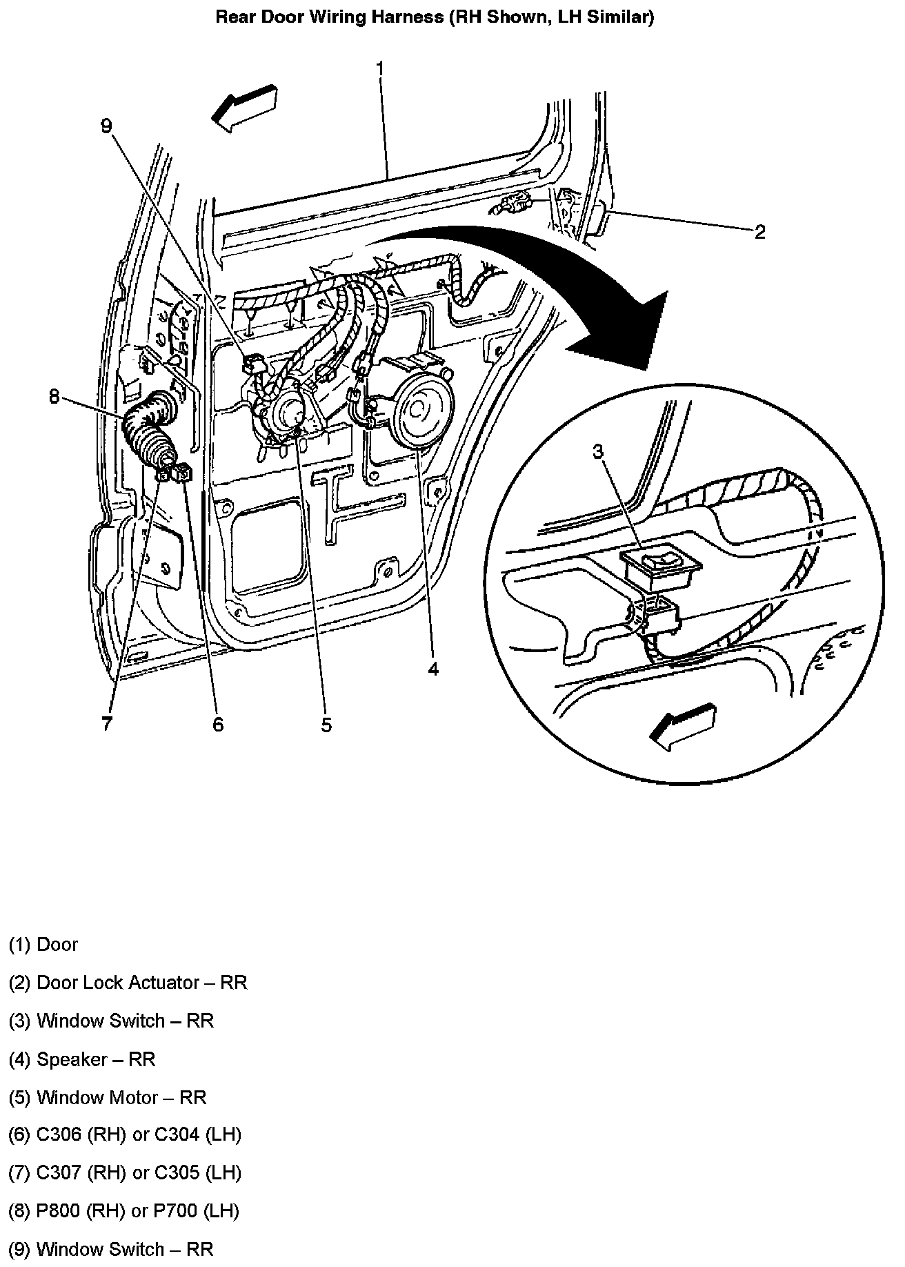 Rear Door Wiring Harness (RH Shown, LH Similar):
