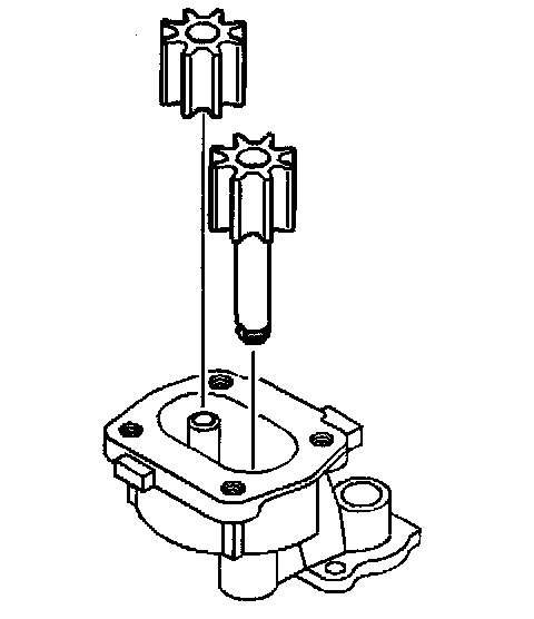 4. Remove the drive gear and the driven gear. Matchmark the gear teeth for assembly.
