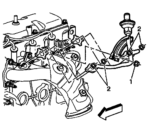 ^ Tighten the air injection pipe nut (2) to 10 Nm (88 inch lbs.).