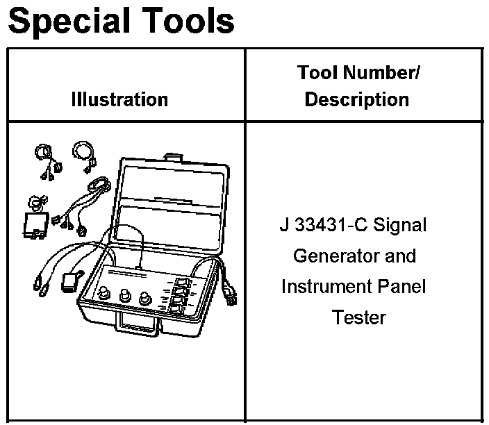 Instrument Panel, Gauges and Warning Indicators: Tools and Equipment