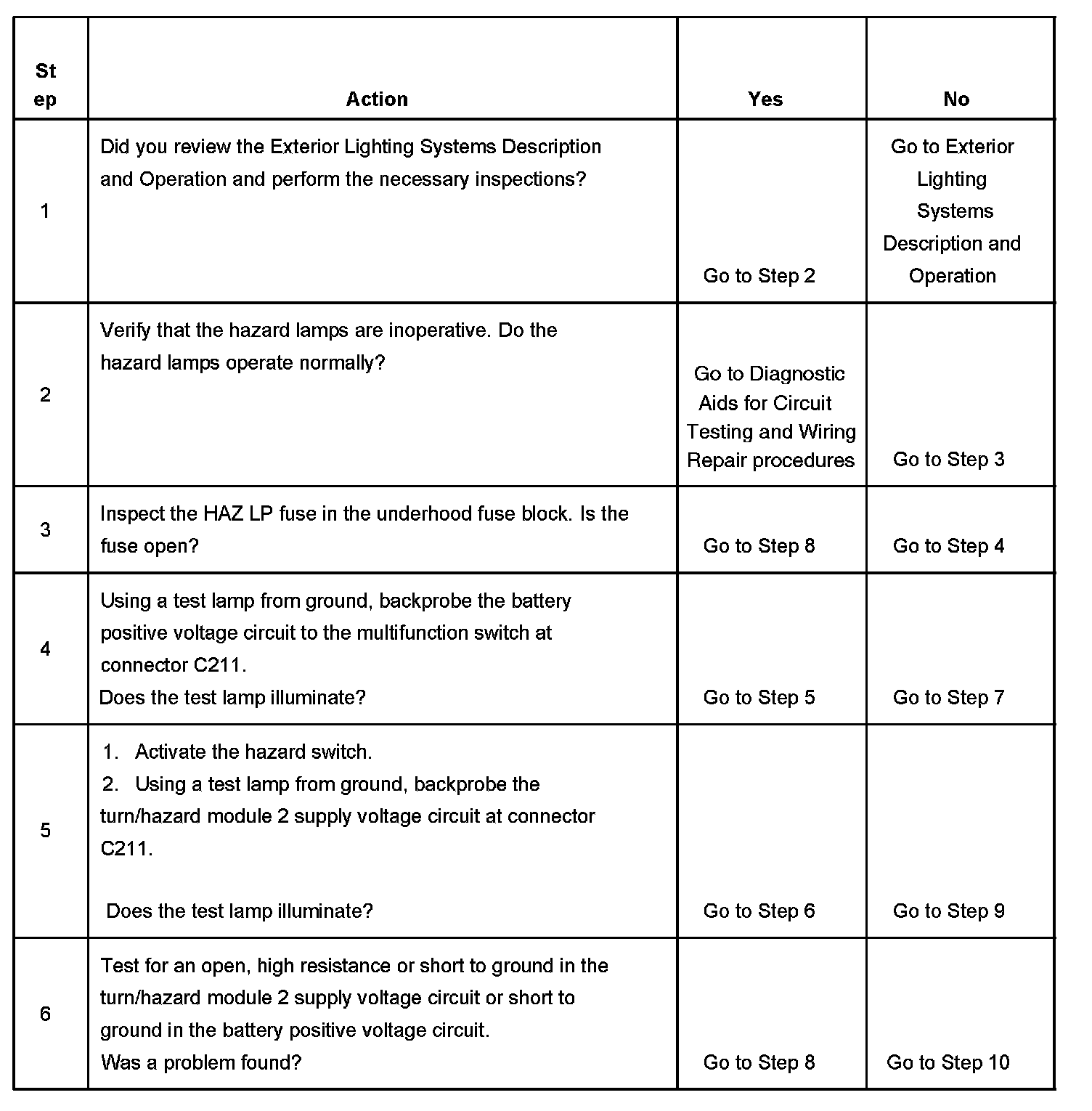Hazard Lamps Inoperative