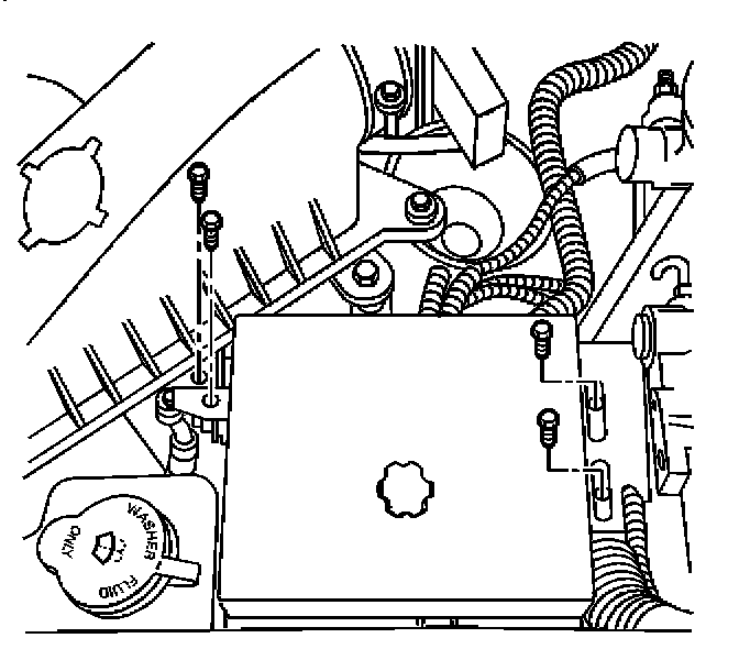 5. Remove the bolts that attach the underhood electrical center to the underhood electrical center support bracket.