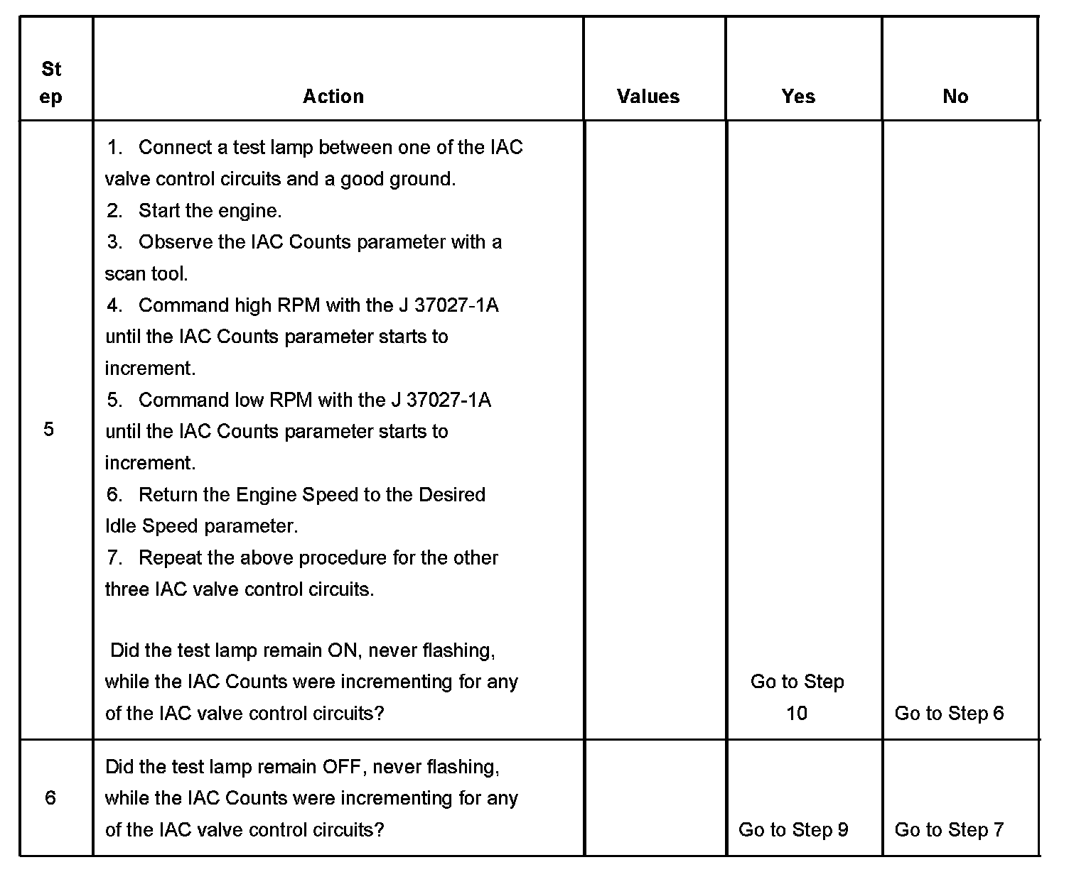 5. This test will determine the ability of the PCM and IAC valve control circuits to control the IAC valve.