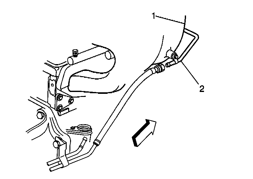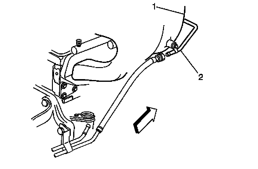 4. Disconnect the engine compartment fuel feed pipe at the fuel rail pipe (2).