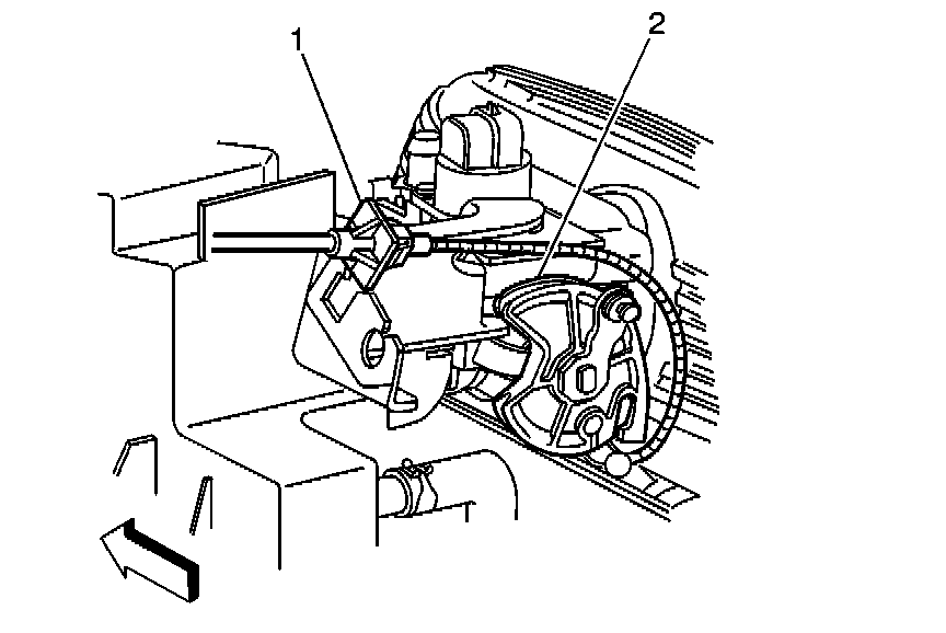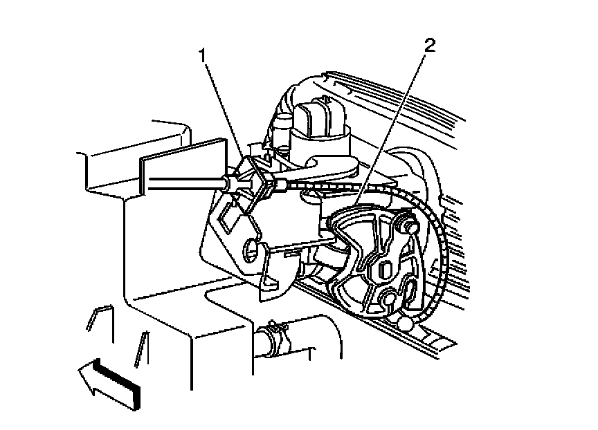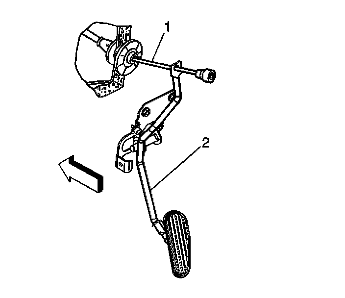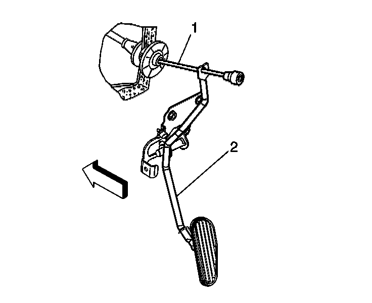 2. Remove the accelerator cable (1) from the slot in pedal assembly (2).