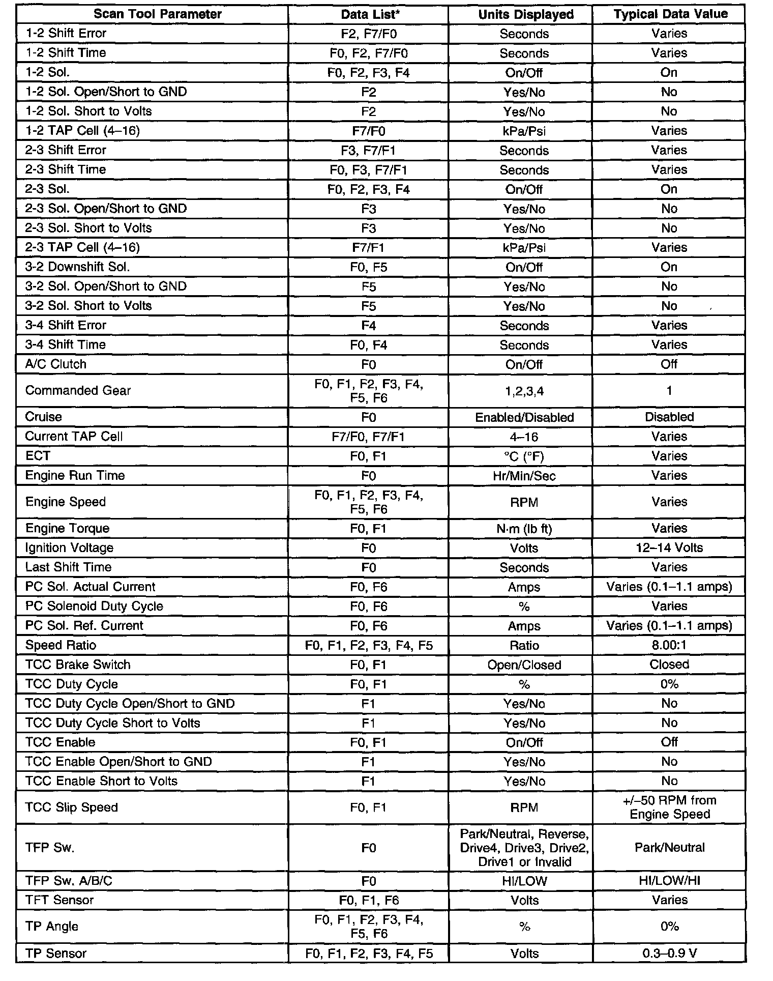 Transmission Scan Tool Data ListPart 1 Of 2: