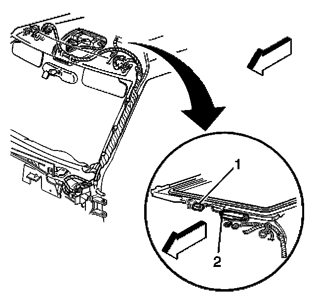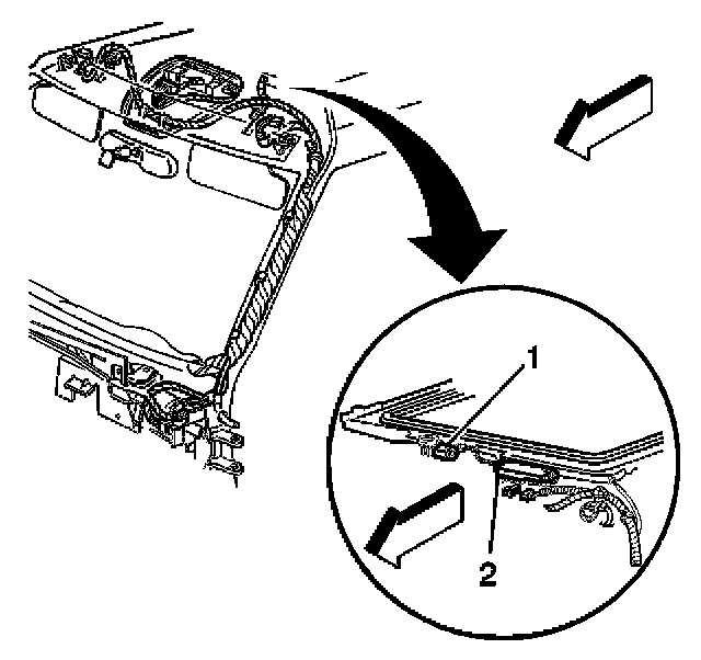 4. Slide the sunroof control module (2) to the right in order to remove the sunroof control module from the vehicle.