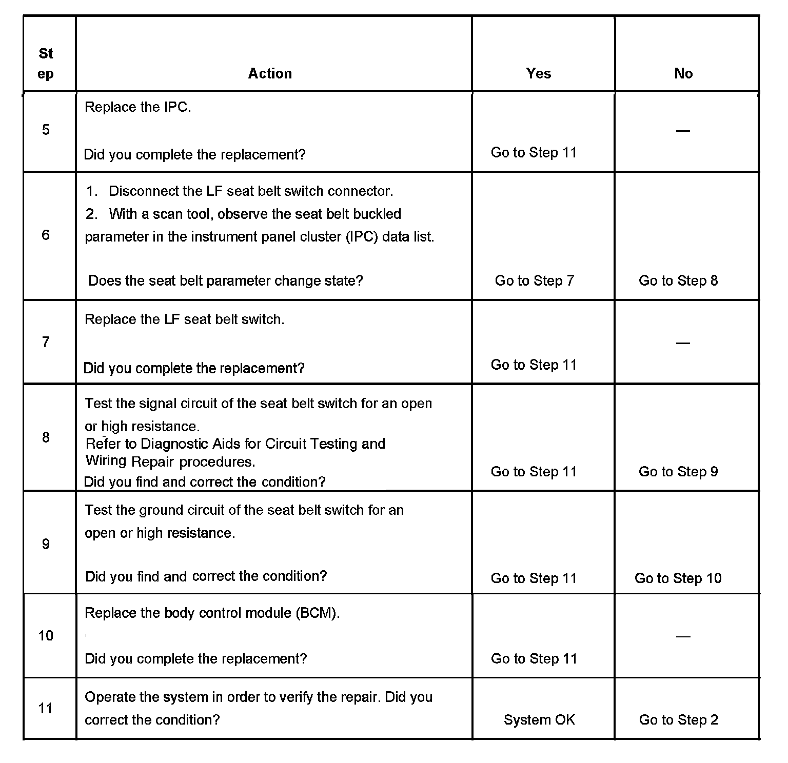 Fasten Safety Belt Indicator/Chime Inoperative