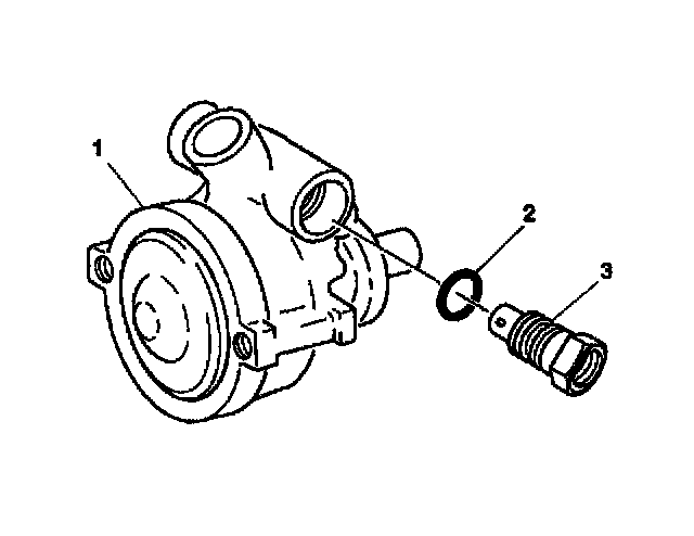 3. Remove the control valve assembly (3) and the flow control spring (2) from the pump housing assembly (1).