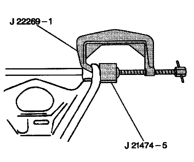 4. Remove the upper control arm bushings. Use the J 22269-01 and J 21474-5.