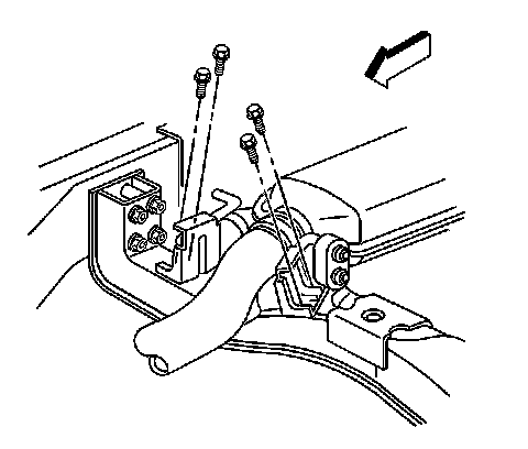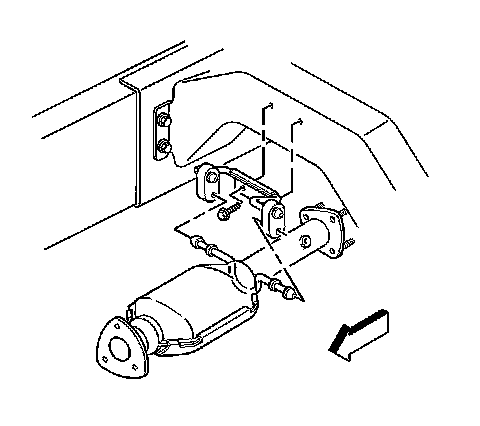 5. Install the catalytic converter hanger bracket to the transmission support mounting bolts, 4.3 L if necessary.