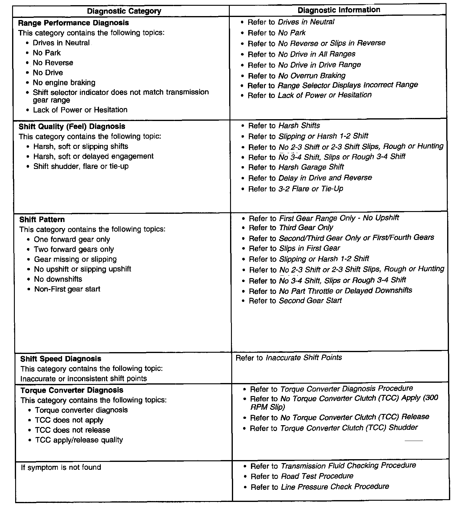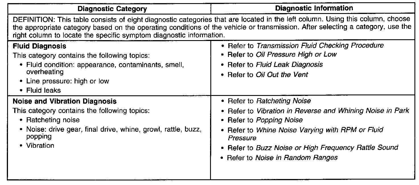 - Symptoms - Automatic Transmission