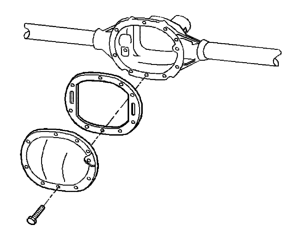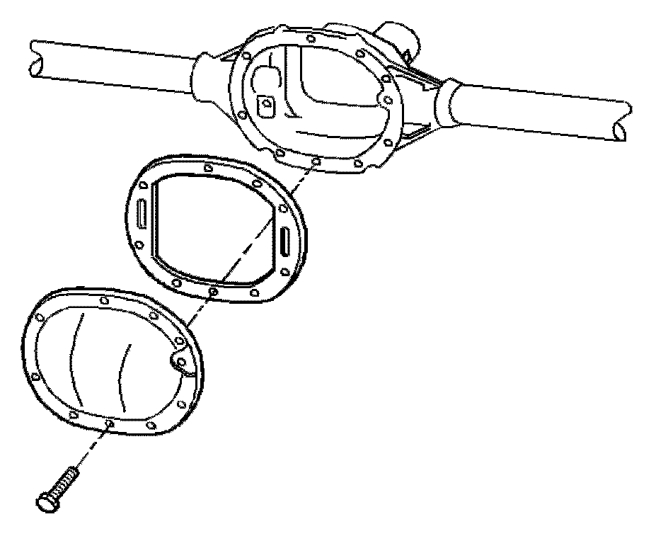 2. Install the rear axle housing cover bolts. Tighten the rear axle housing cover bolts in a crosswise pattern to 39 Nm (29 lb ft).