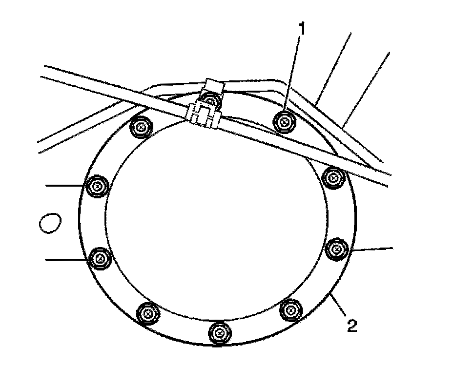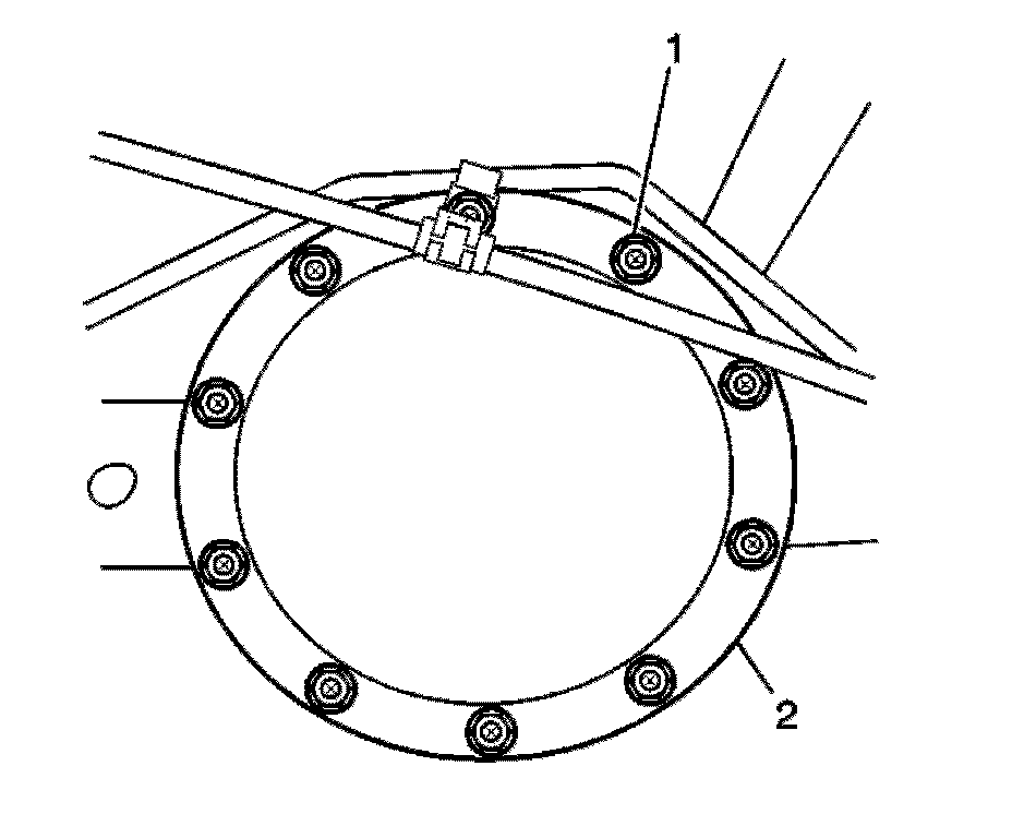2. Install the rear axle housing cover bolts (1). Tighten the rear housing cover bolts in a crosswise pattern to 39 Nm (29 lb ft).