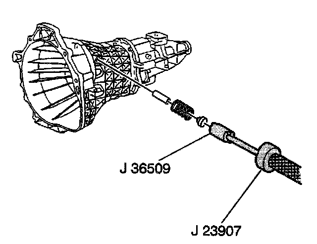 4. Using the J 36509 in the detent plug and the J 23907 remove the following components from the clutch housing:
