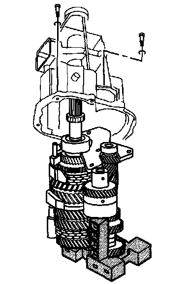 5. Remove the 5 bolts retaining the input shaft-bearing retainer to the clutch housing.