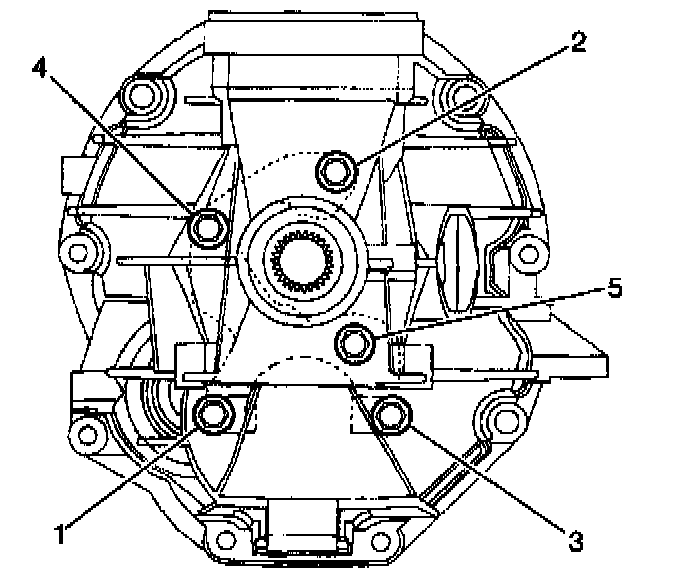 14.4. Tighten the main shaft bearing retainer to housing bolts in the following order: 1,2,3,4,5.