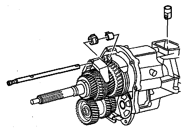 ^ Ensure the hook end of the main shaft bearing retainer is installed under the mainshaft rear bearing.