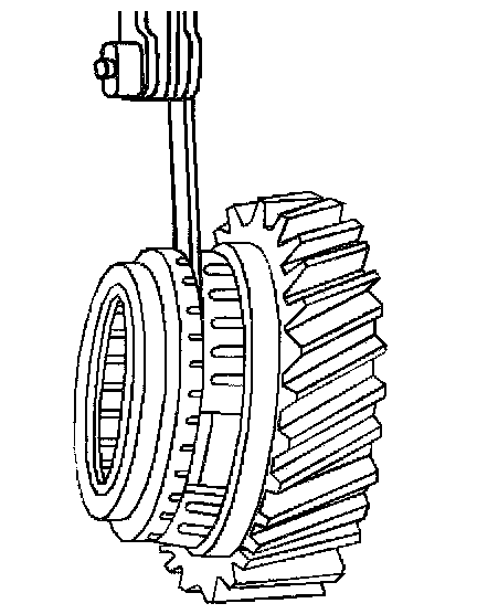 11. Measure the cap between the vertical faces of the blocking ring teeth and the synchronizer clutch gear as follows: