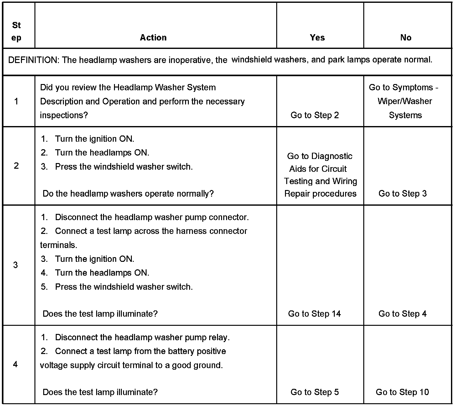 WASHERS INOPERATIVE - HEADLAMPTEST DESCRIPTION