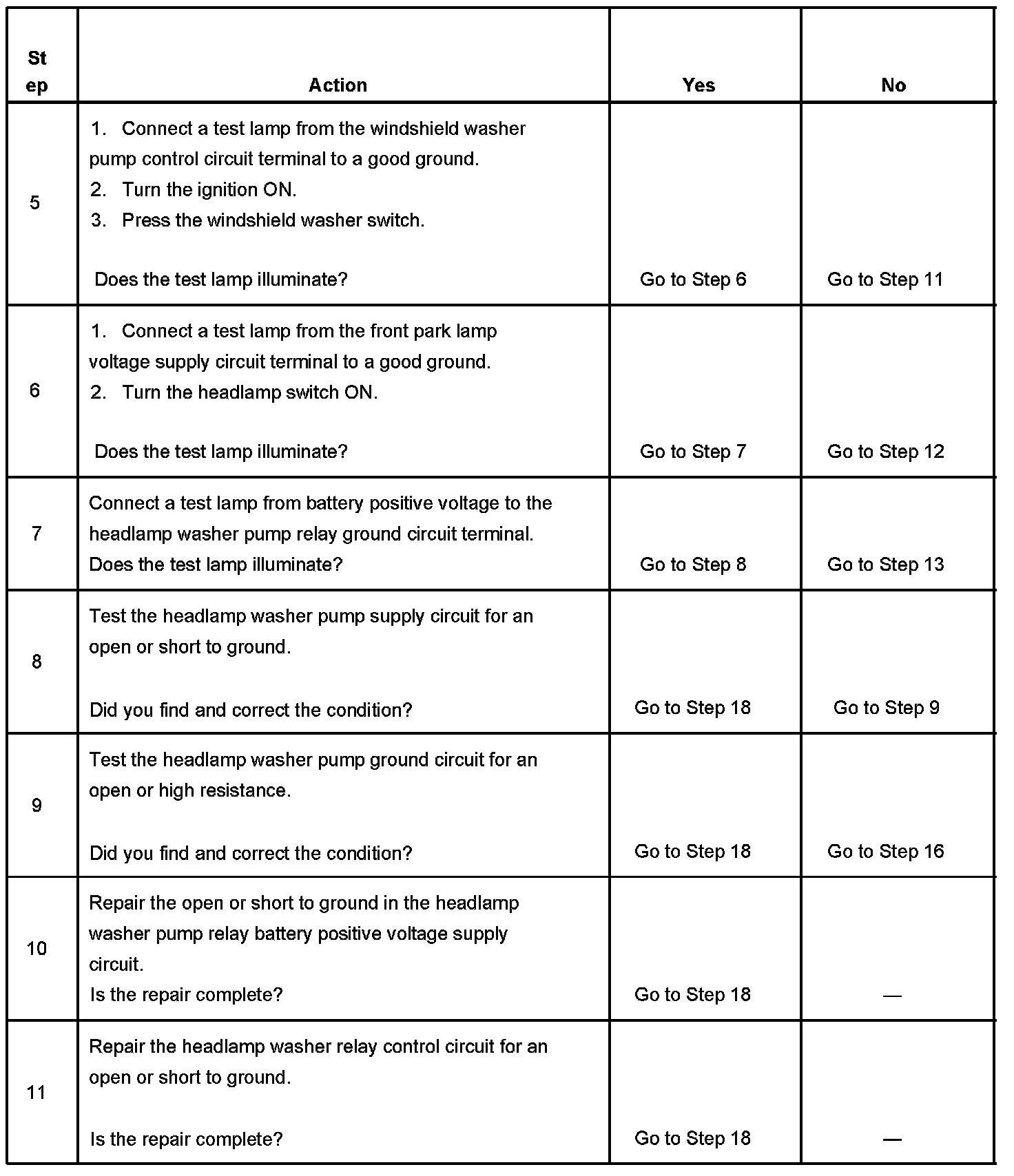 5. Tests the washer pump control circuit to the headlamp washer pump relay.