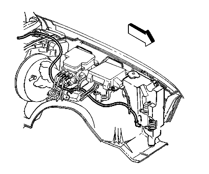 1. Route the hose over the left wheelhouse panel.