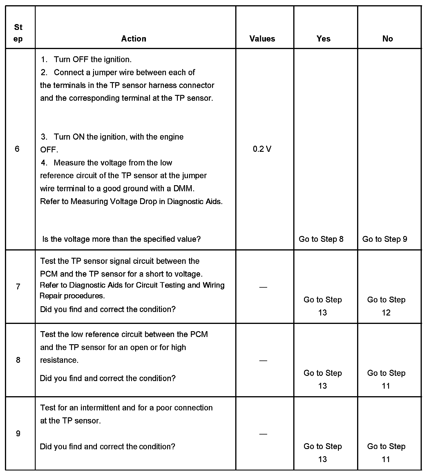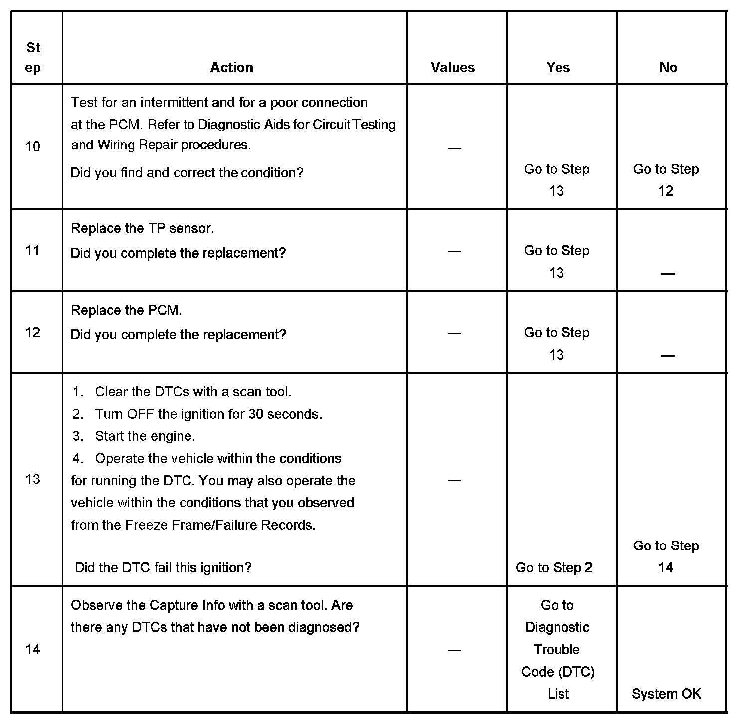 The number below refers to the step number on the diagnostic table.