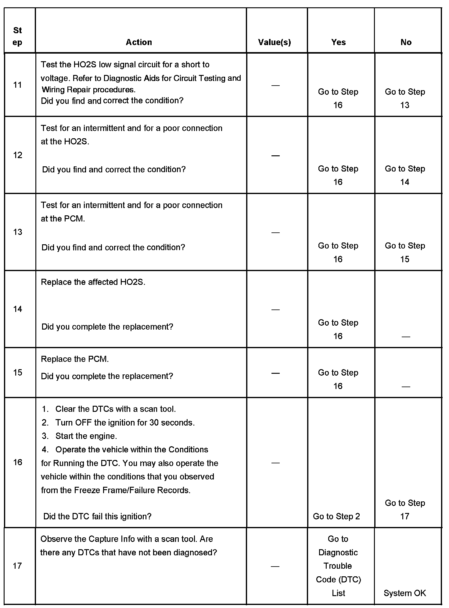 The number below refers to the step number on the diagnostic table.