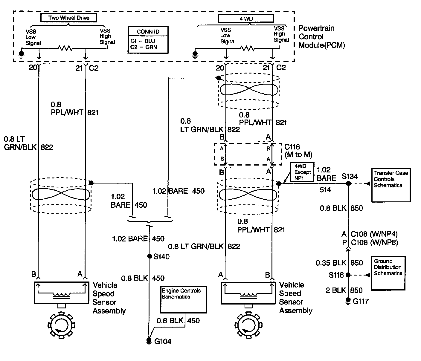 The vehicle speed sensor (VSS) assembly provides vehicle speed information to the powertrain control module (PCM). The VSS assembly is a permanent magnet generator. The VSS produces an AC voltage as rotor teeth on the transmission output shaft pass through the sensor's magnetic field. The AC voltage level and the number of pulses increase as the speed of the vehicle increases. The PCM converts the pulsing voltage to vehicle speed. The PCM uses the vehicle speed signal to determine shift timing and torque converter clutch (TCC) scheduling.