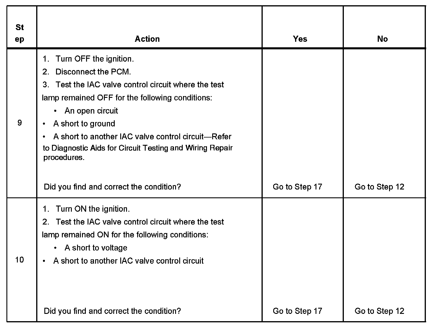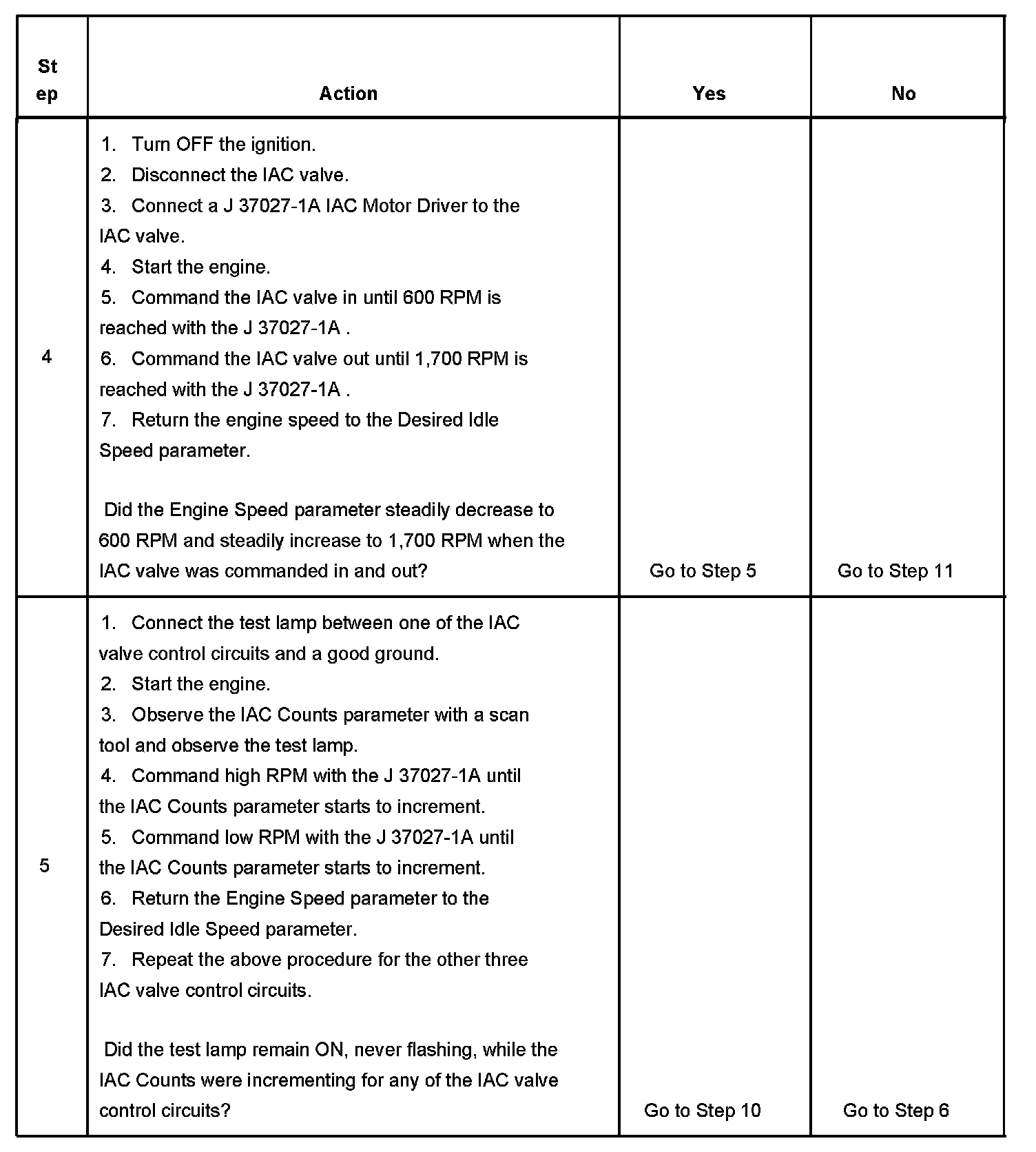 5. This test will determine the ability of the PCM and IAC valve control circuits to control the IAC valve.