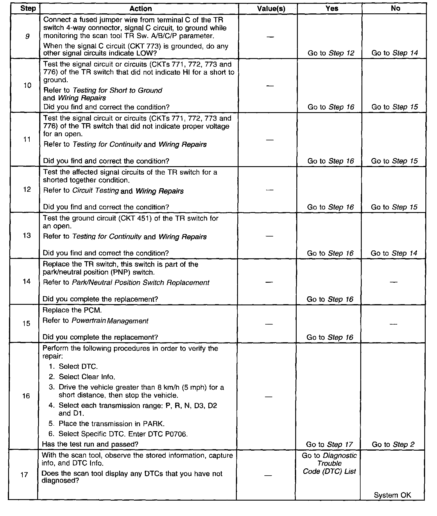 ^ The PCM stores DTC P0706 in PCM history.