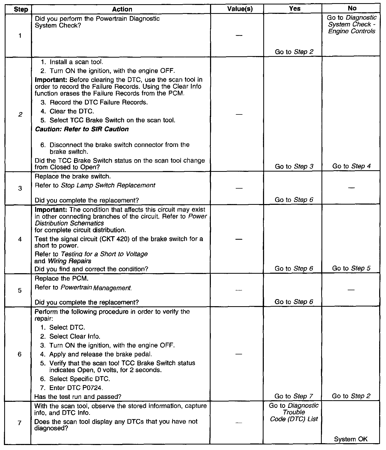 ^ The PCM stores DTC P0724 in PCM history.