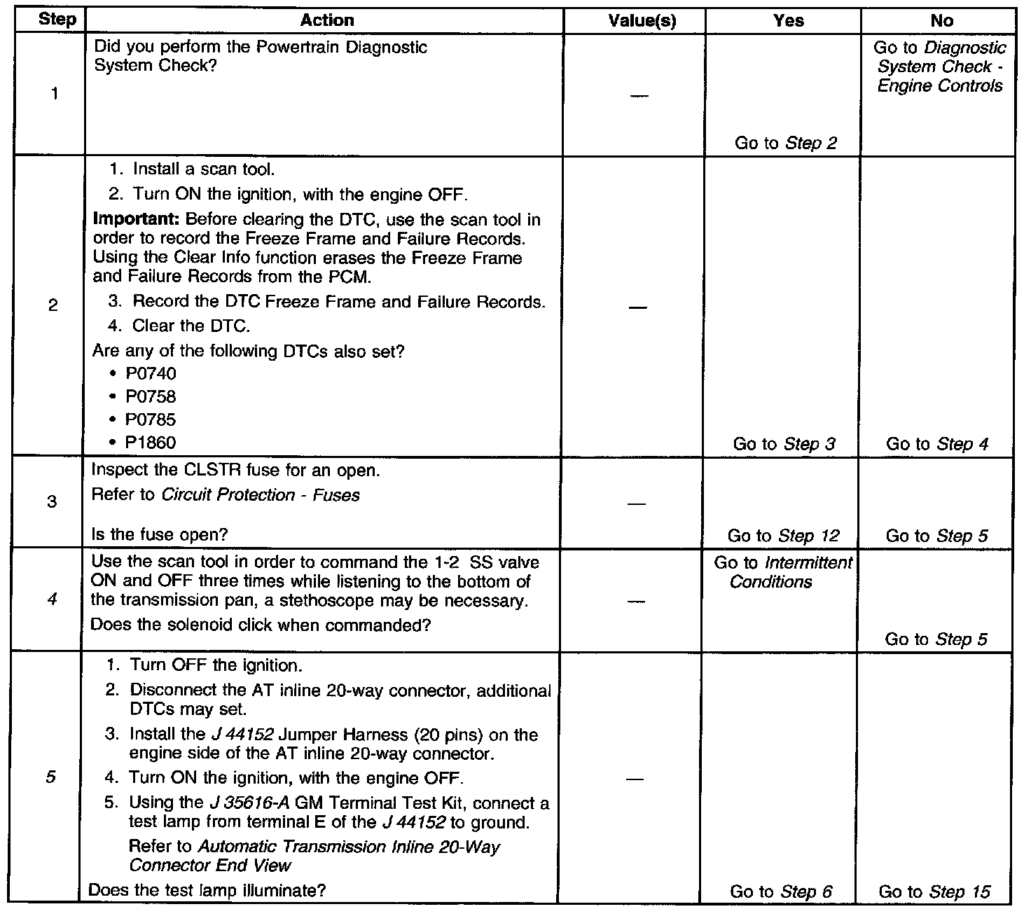 5. This step tests for power to the 1-2 SS valve from the ignition through the fuse.