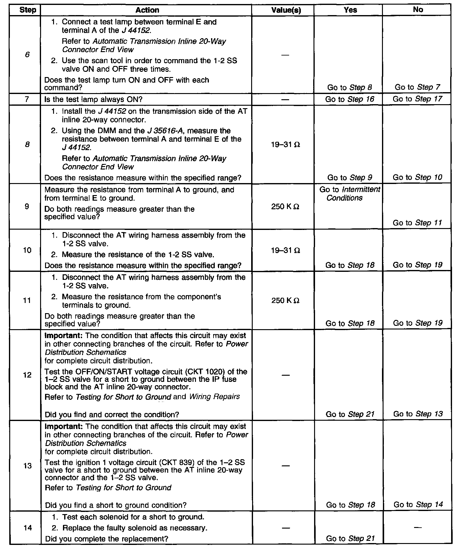 8. This step measures the resistance of the AT wiring harness assembly and of the 1-2 SS valve.