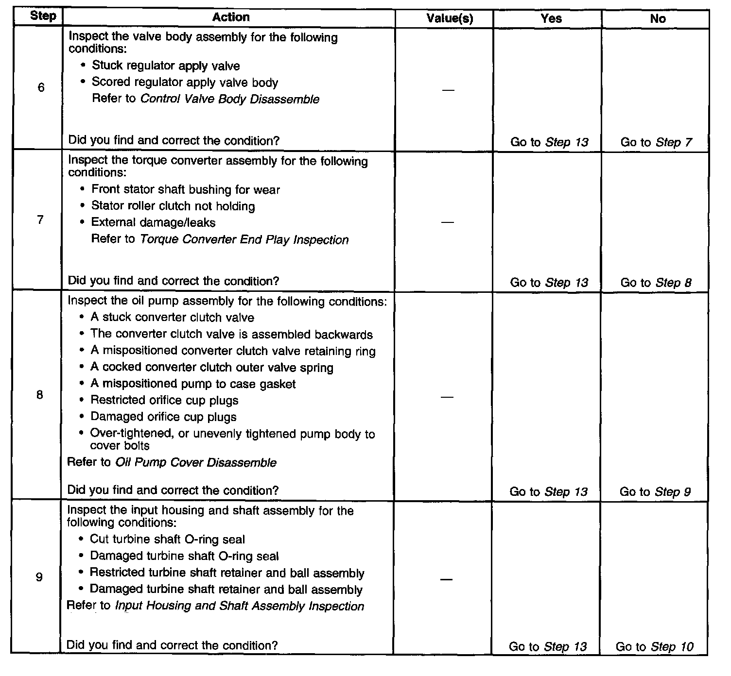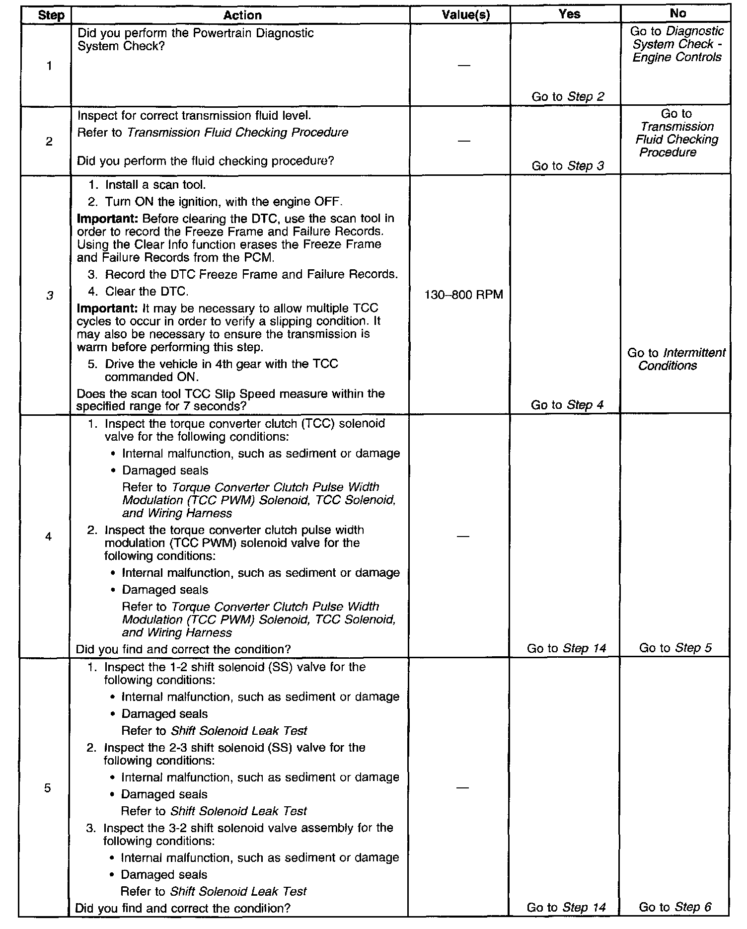 If Condition 1 is met and the TCC slip speed is 130 - 800 RPM for 7 seconds, then the PCM will command the TCC Off for 1.5 seconds.