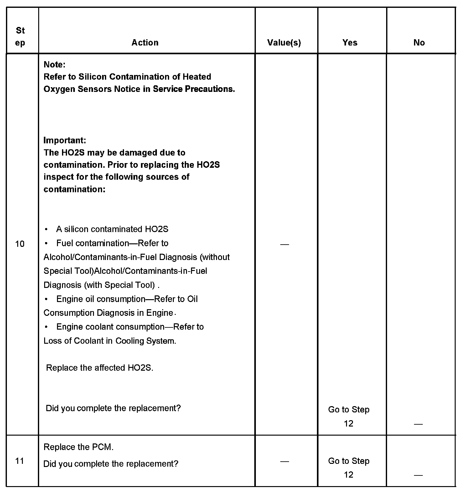 The number below refers to the step number on the diagnostic table.