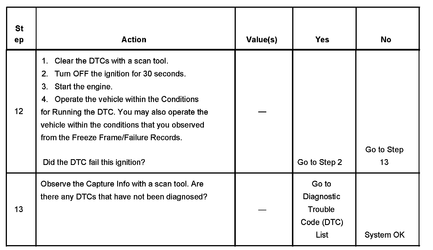 - A current DTC, Last Test Failed, clears when the diagnostic runs and passes.