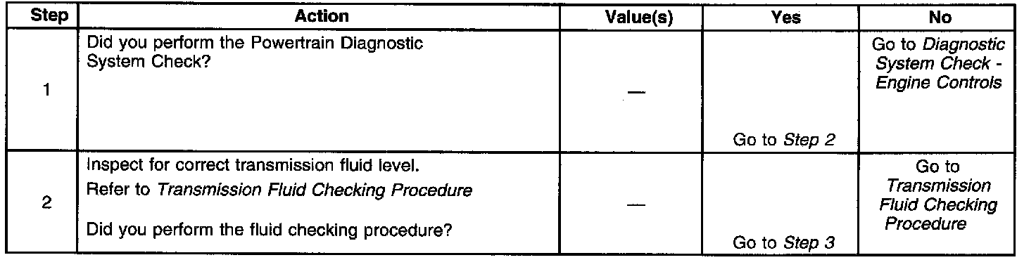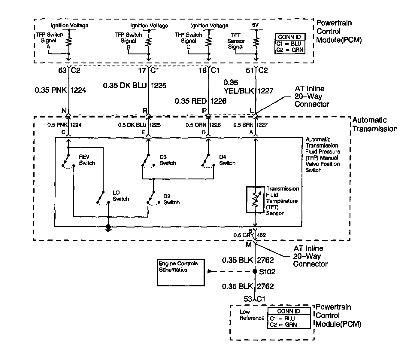 ^ Refer to the Transmission Fluid Pressure (TFP) Manual Valve Position Switch Logic table for the normal range signals and the invalid combinations. On the table, LOW is 0 volts, HI is ignition voltage.