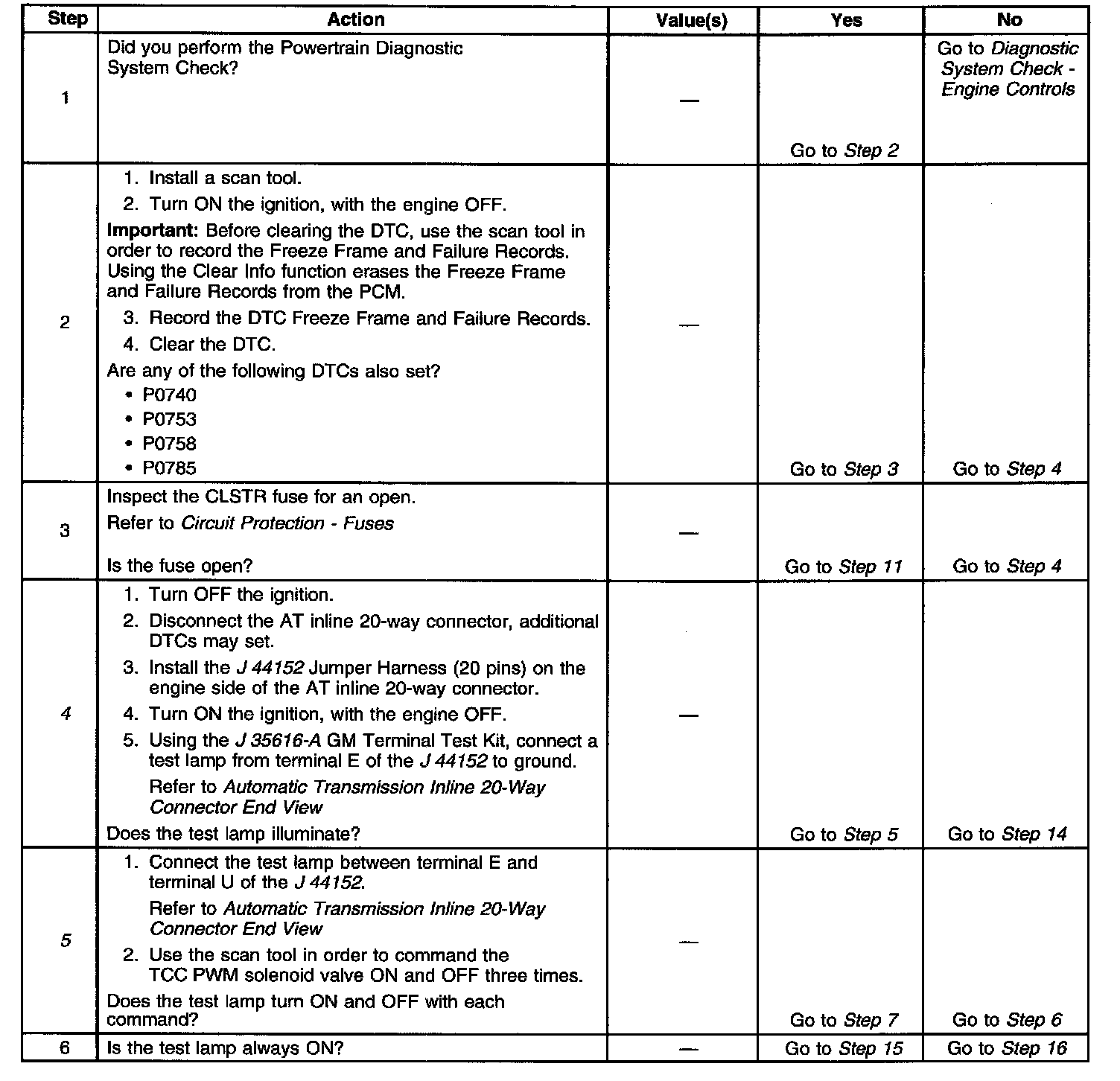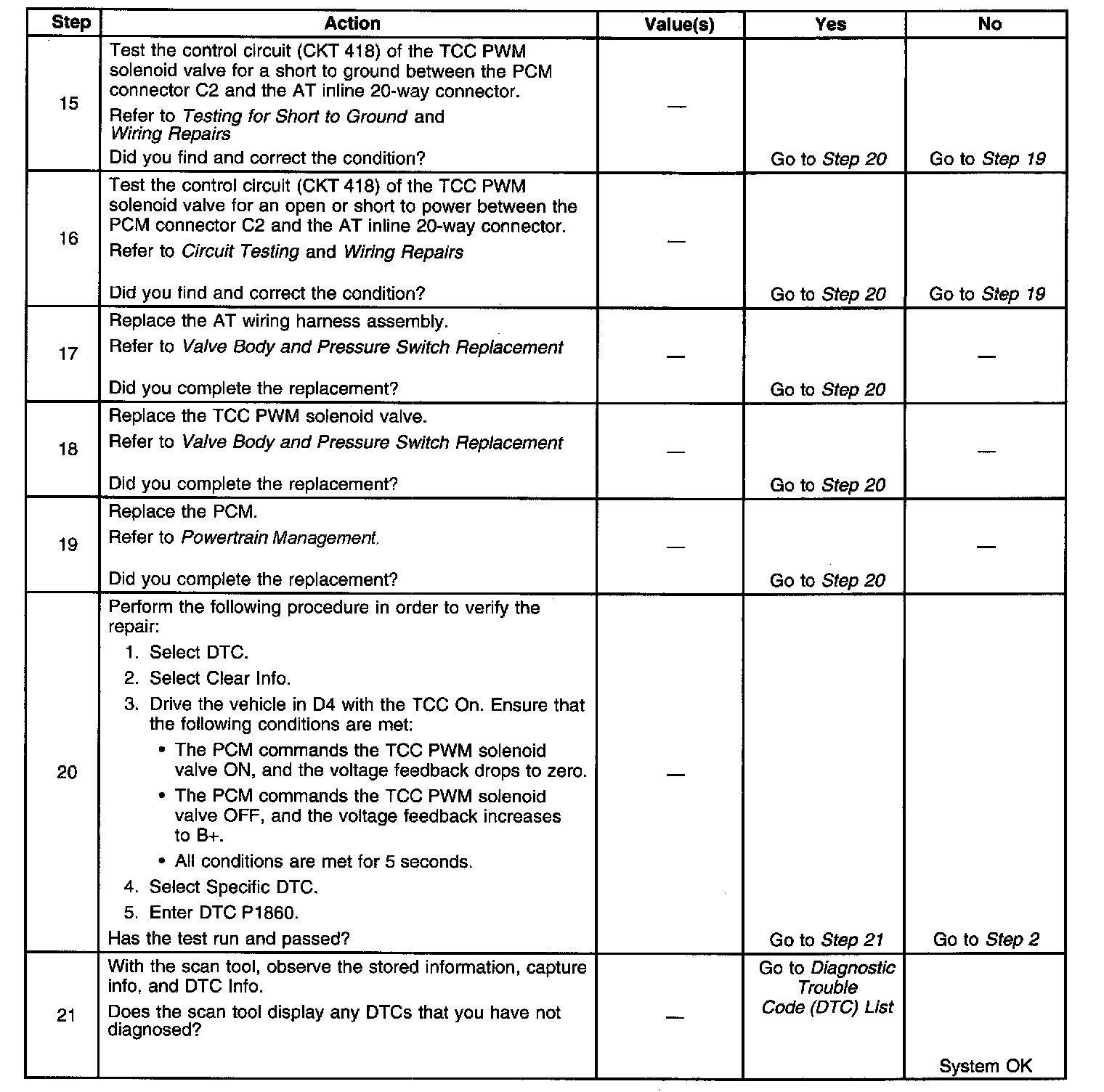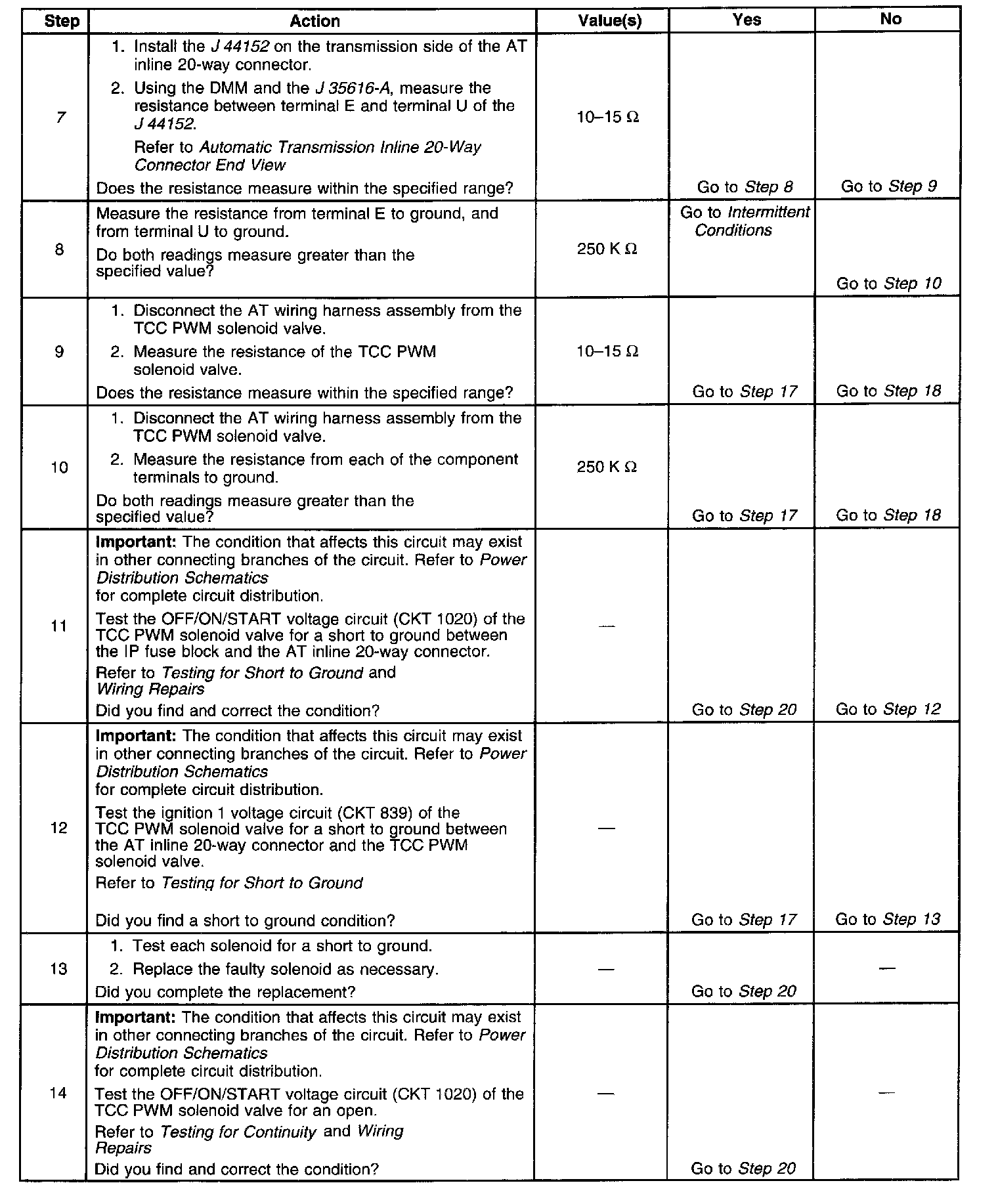 7. This step tests the resistance of the TCC PWM solenoid valve and the automatic transmission (AT) wiring harness assembly.
