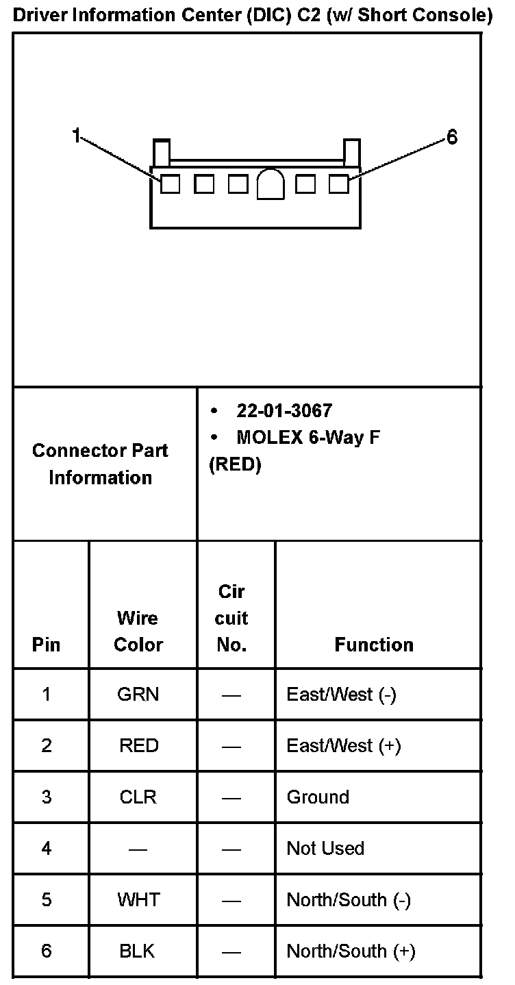 Driver Information Center (DIC) C2 (W/ Short Console)