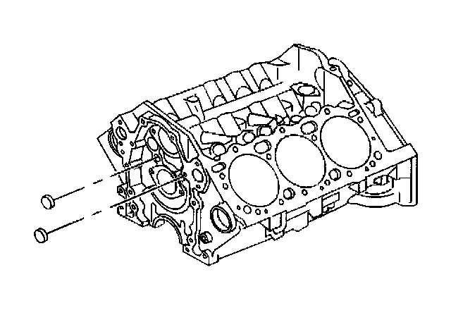12. Remove the front oil gallery plugs or balls from the front of the engine block and discard. Insert a 3/8 x 26 inch rod into the rear oil gallery holes in order to drive out the front oil gallery plugs or balls.