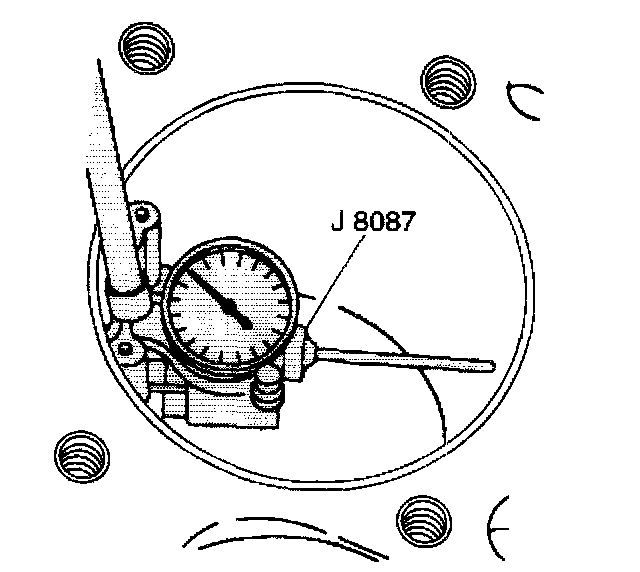 10.2. Center the J 8087 In the cylinder bore and turn the indicator dial to 0.