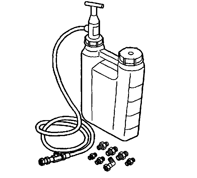 6. Pump the handle on the J 45299 in order to flow a minimum of 1 - 1.9 liters (1 - 2 quarts) engine oil. Observe the flow of engine oil through the flexible hose and into the engine assembly.