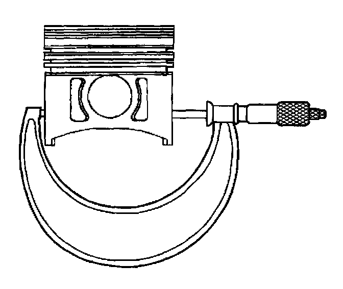 3. With a micrometer or caliper at a right angle to the piston pin bore, measure the piston 11 mm (0.433 inch) from the bottom of the skirt.