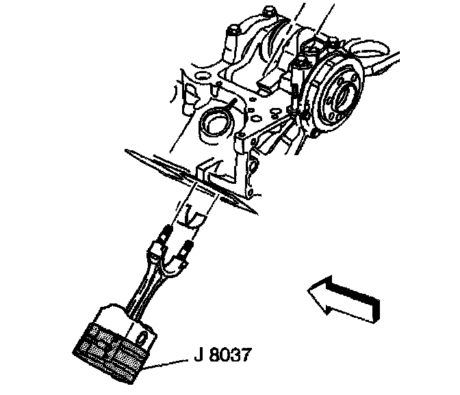 4. Install the piston and connecting rod assembly, and the J 8037 into the proper cylinder bore.