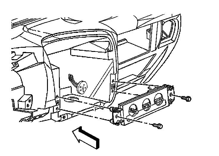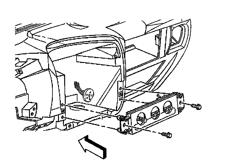 3. Depress the HVAC control assembly retaining tabs and remove the HVAC control assembly from the instrument panel.