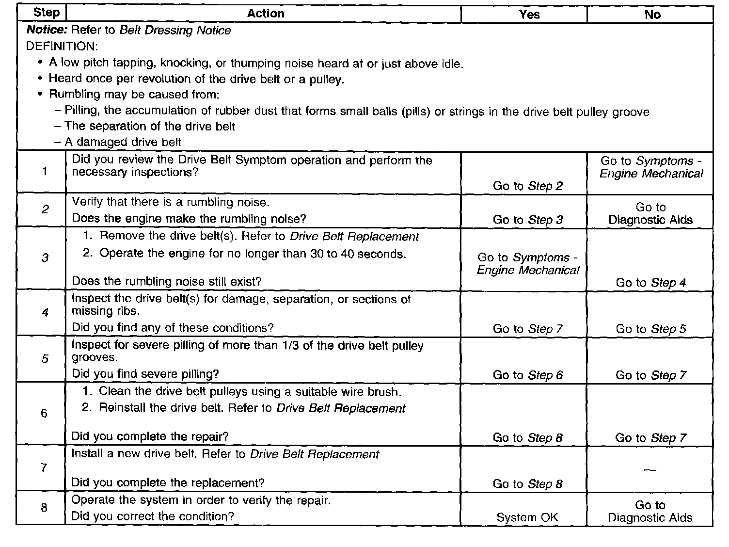 Drive Belt Rumbling DiagnosisDrive Belt Rumbling Diagnosis Step 1 - 8: