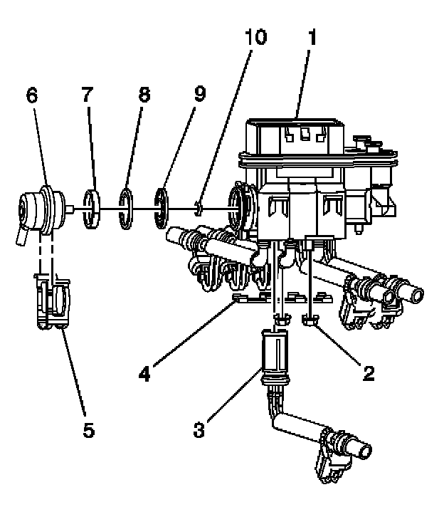 The fuel meter body assembly (1) attaches to the lower intake manifold. The fuel meter body assembly performs the following functions: